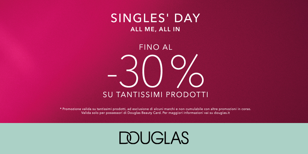 *Sconto del 20% senza soglia, -25% su 99€ e -30% su 129€ valido sulle seguenti categorie: fragranze, skincare, haircare e accessori. Sconto del 20% senza soglia sul make-up. Promozione valida su tantissimi prodotti, ad esclusione di alcuni marchi e non cumulabile con altre promozioni in corso. Valida solo per possessori di Douglas Beauty Card. Per maggiori informazioni vai su douglas.it