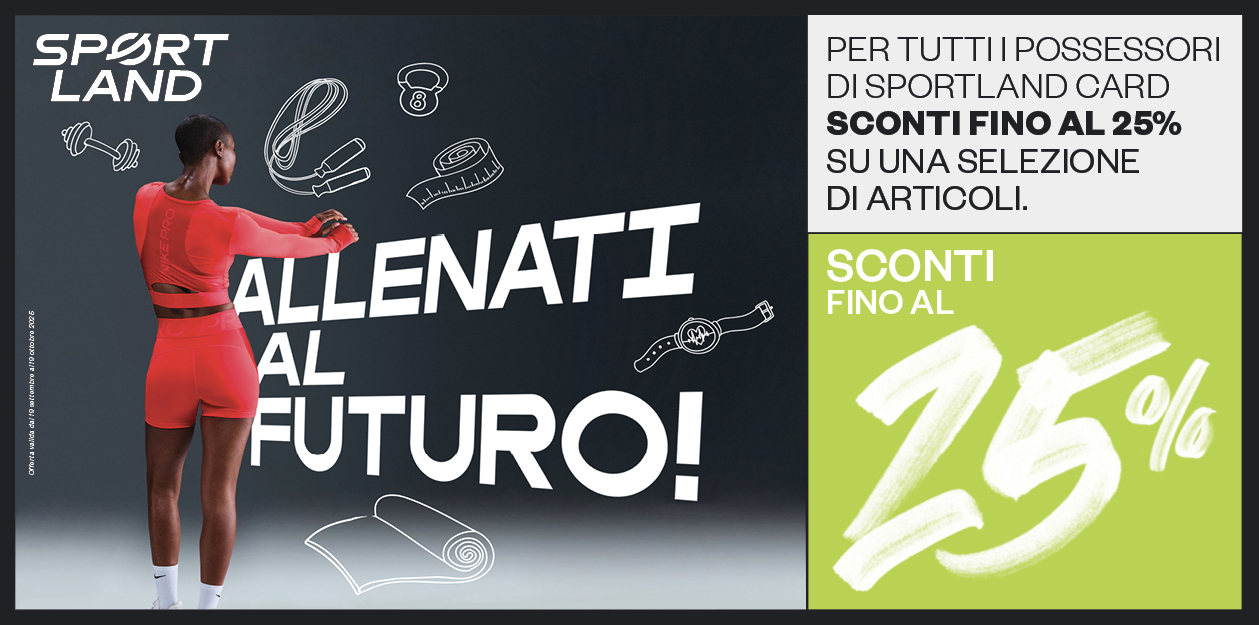 PER TUTTI I POSSESSORI DI SPORTLAND CARD SCONTI FINO AL 25% SU UNA SELEZIONE DI ARTICOLI.